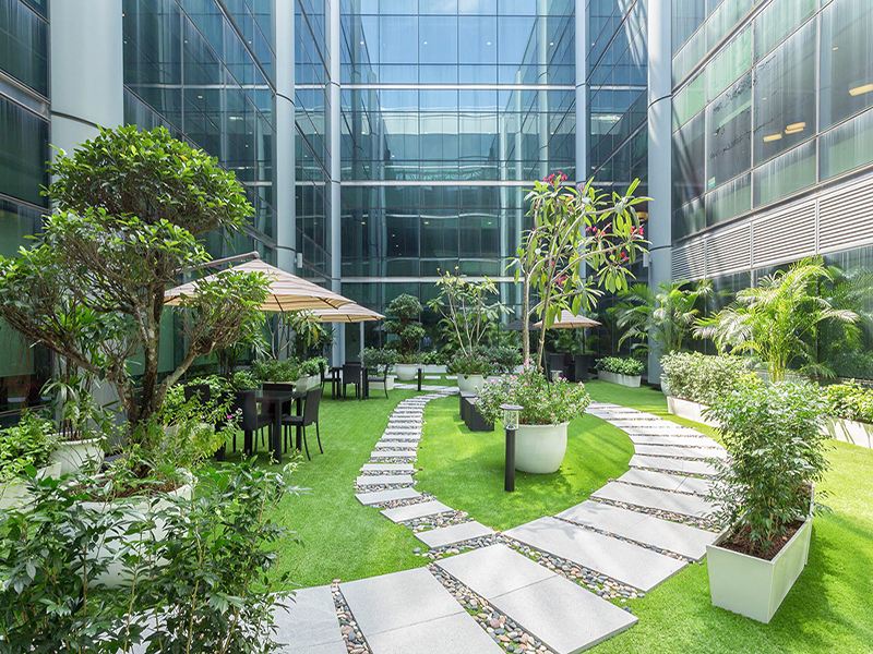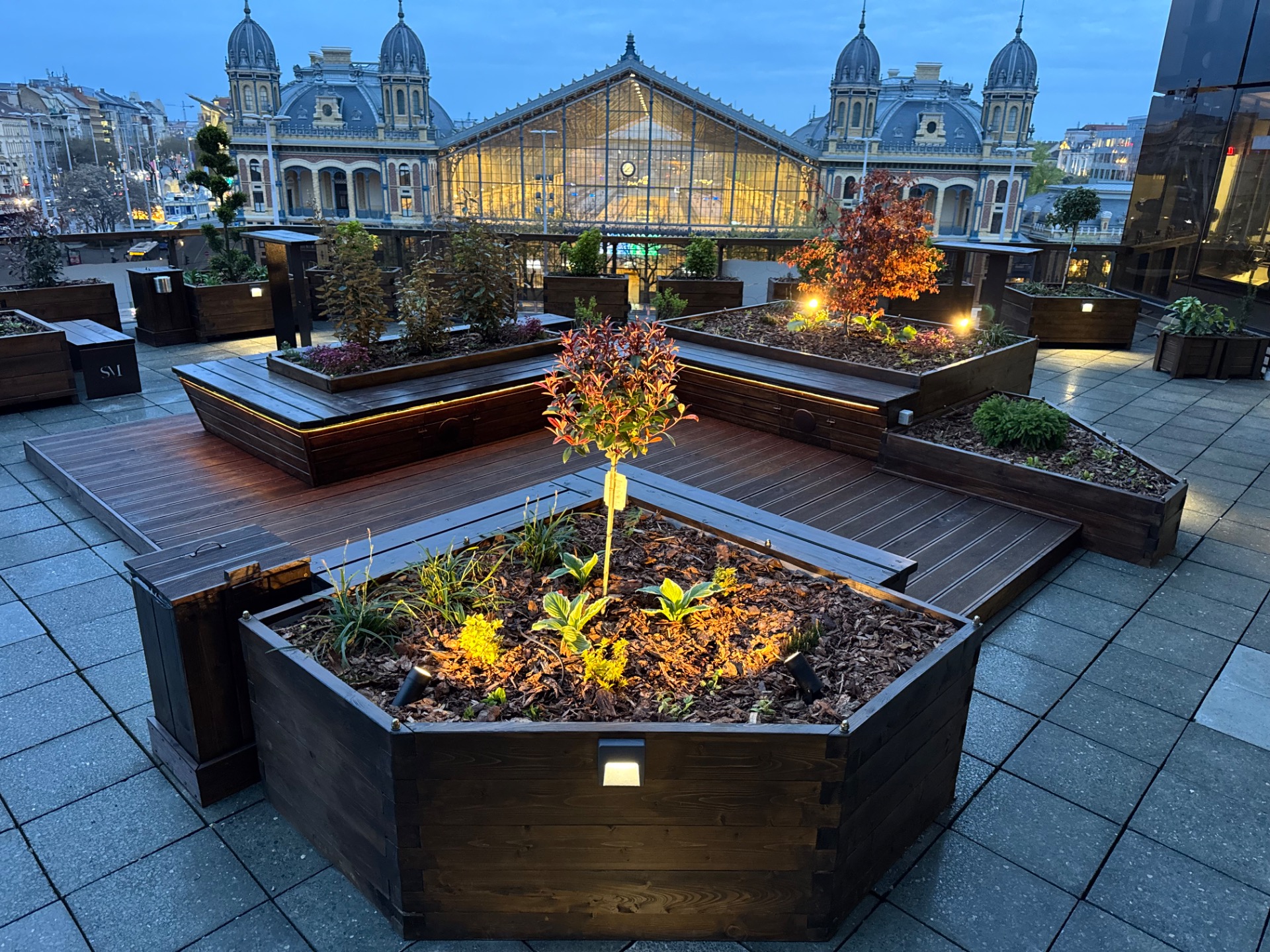 Planténer építés, teljes körű kertépítés, öntözőrendszer telepítés tetőteraszon, közös kertben, belső udvaron.